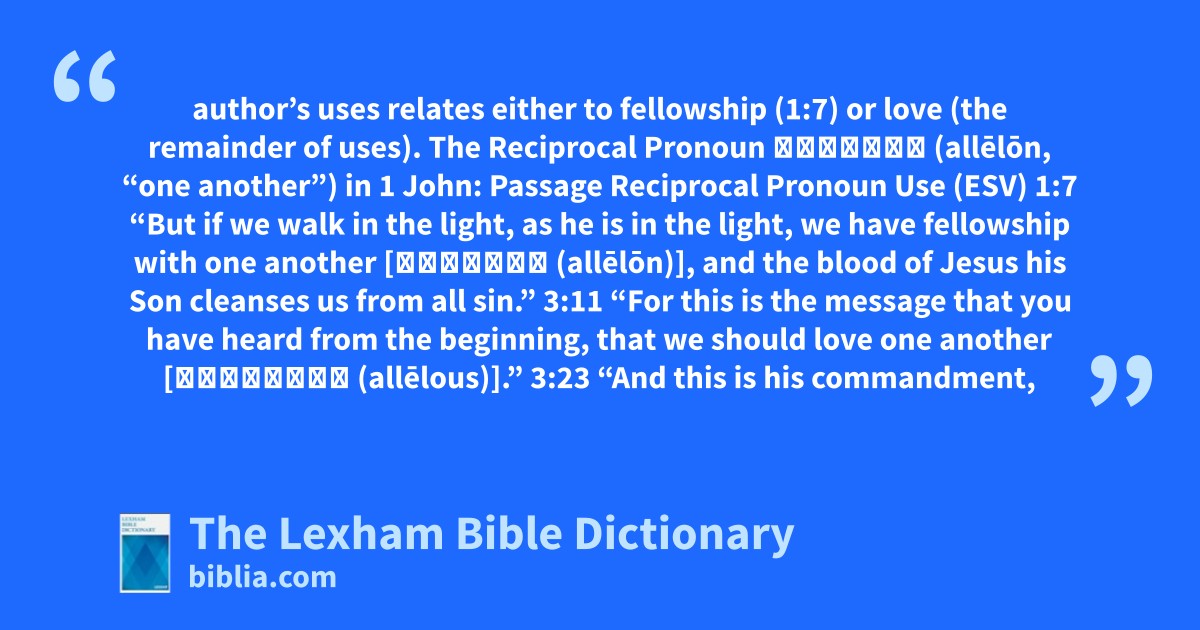 The Reciprocal Pronoun ἀλλήλων (allēlōn, “one another”) in 1 John: