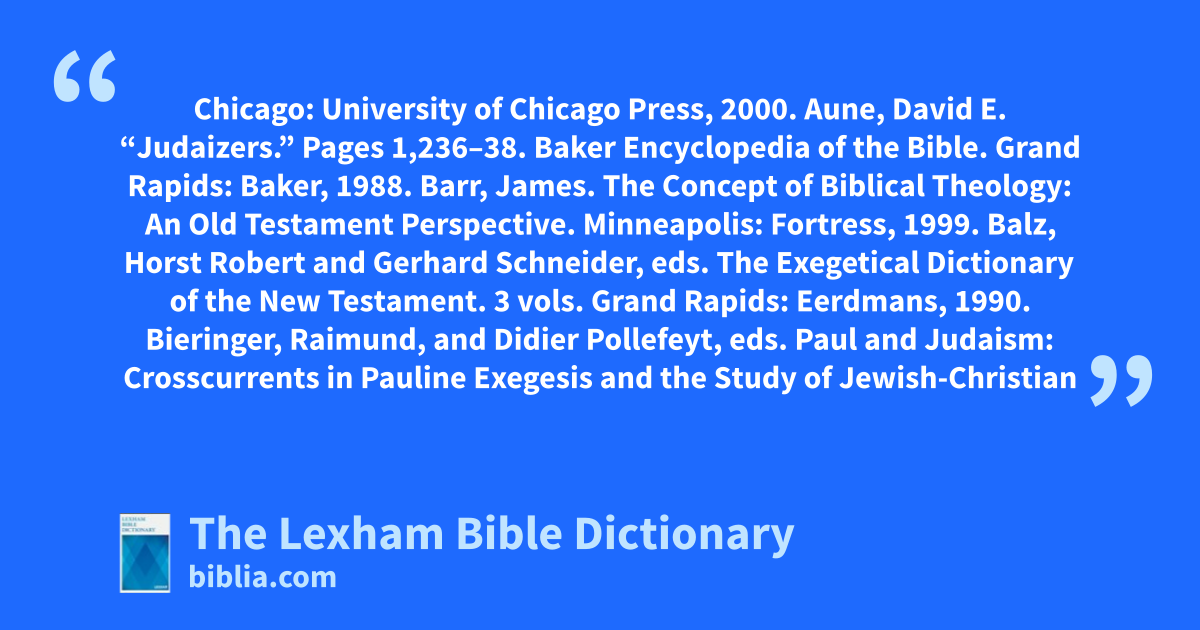 Aune, David E. “Judaizers.” Pages 1,236–38. Baker Encyclopedia of the Bible. Grand Rapids: Baker, 1988.
