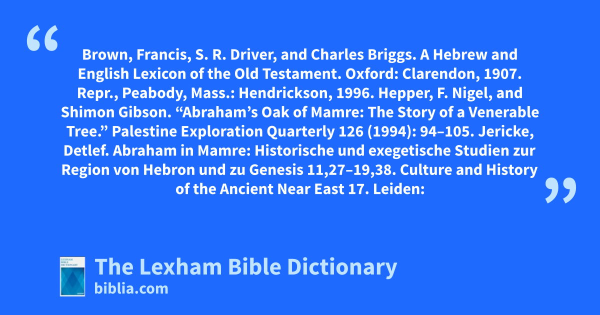 Hepper, F. Nigel, and Shimon Gibson. “Abraham’s Oak of Mamre: The Story of a Venerable Tree.” Palestine Exploration Quarterly 126 (1994): 94–105.