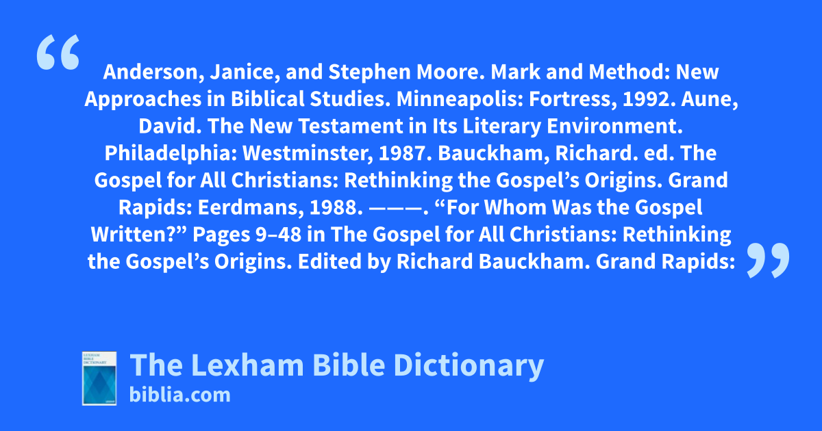 ———. “For Whom Was the Gospel Written?” Pages 9–48 in The Gospel for All Christians: Rethinking the Gospel’s Origins. Edited by Richard Bauckham. Grand Rapids: Eerdmans, 1988.