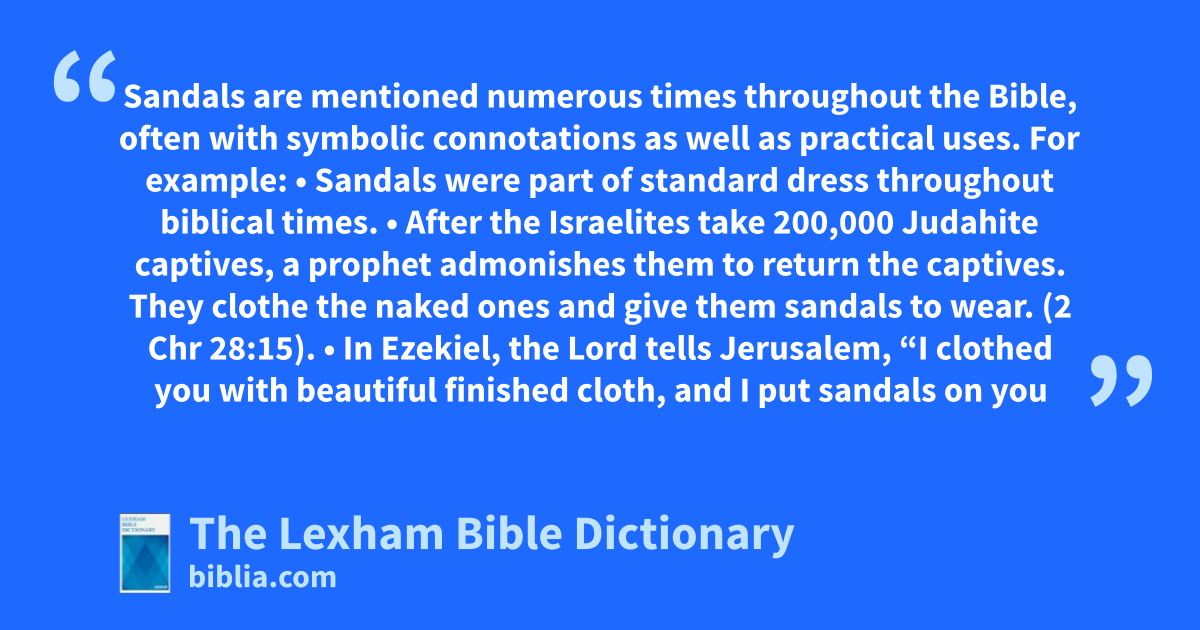 Sandals are mentioned numerous times throughout the Bible, often with symbolic connotations as well as practical uses. For example: