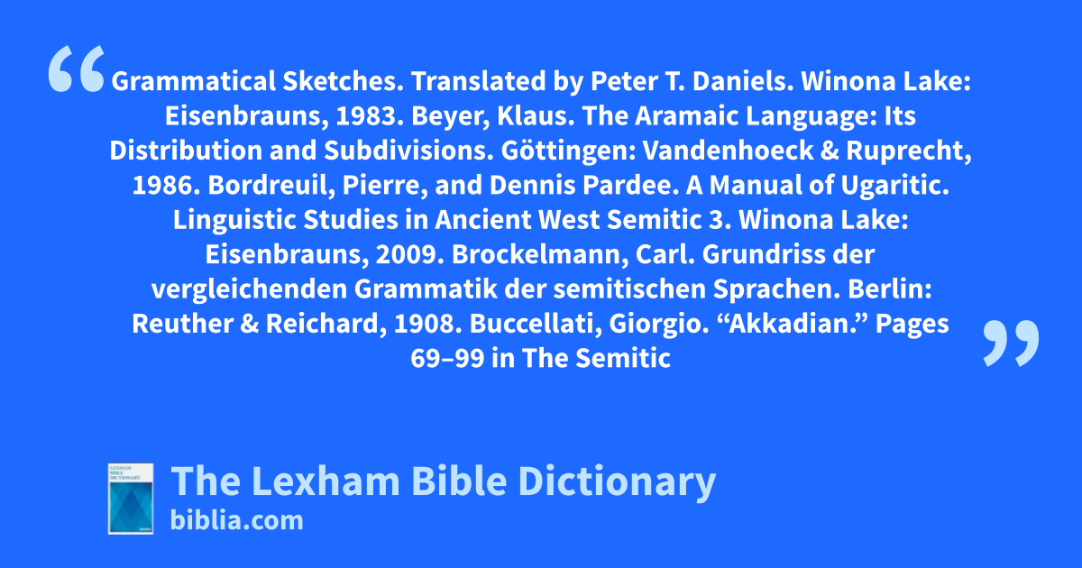 Lipiński, Edward. Semitic Languages: Outline of A Comparative Grammar. Vol. 80. 2nd ed. Orientalia Lovaniensia Analecta. Leuven: Peeters, 2001.