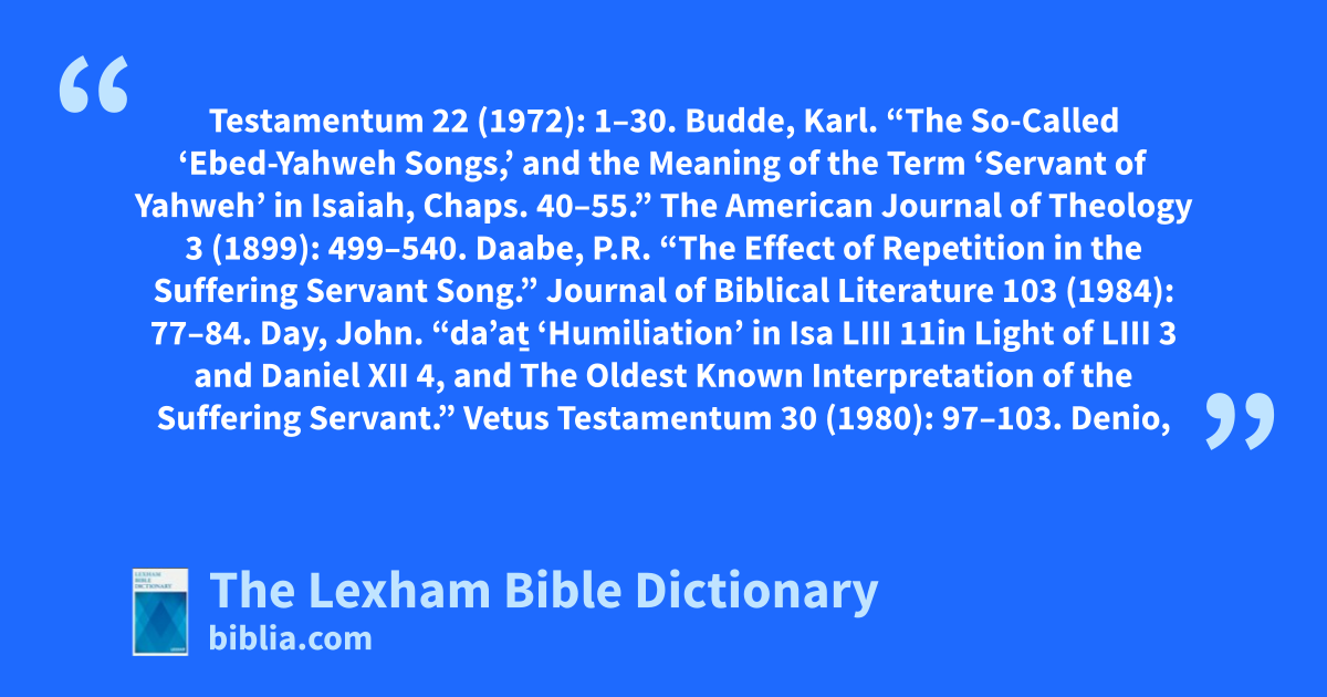 Day, John. “da’aṯ ‘Humiliation’ in Isa LIII 11in Light of LIII 3 and Daniel XII 4, and The Oldest Known Interpretation of the Suffering Servant.” Vetus Testamentum 30 (1980): 97–103.