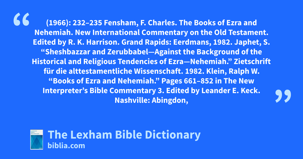Steinmann, Andrew E. “A Chronological Note: The Return of the Exiles under Sheshbazzar and Zerubbabel (Ezra 1–2).” Journal of the Evangelical Theological Society. 2008.