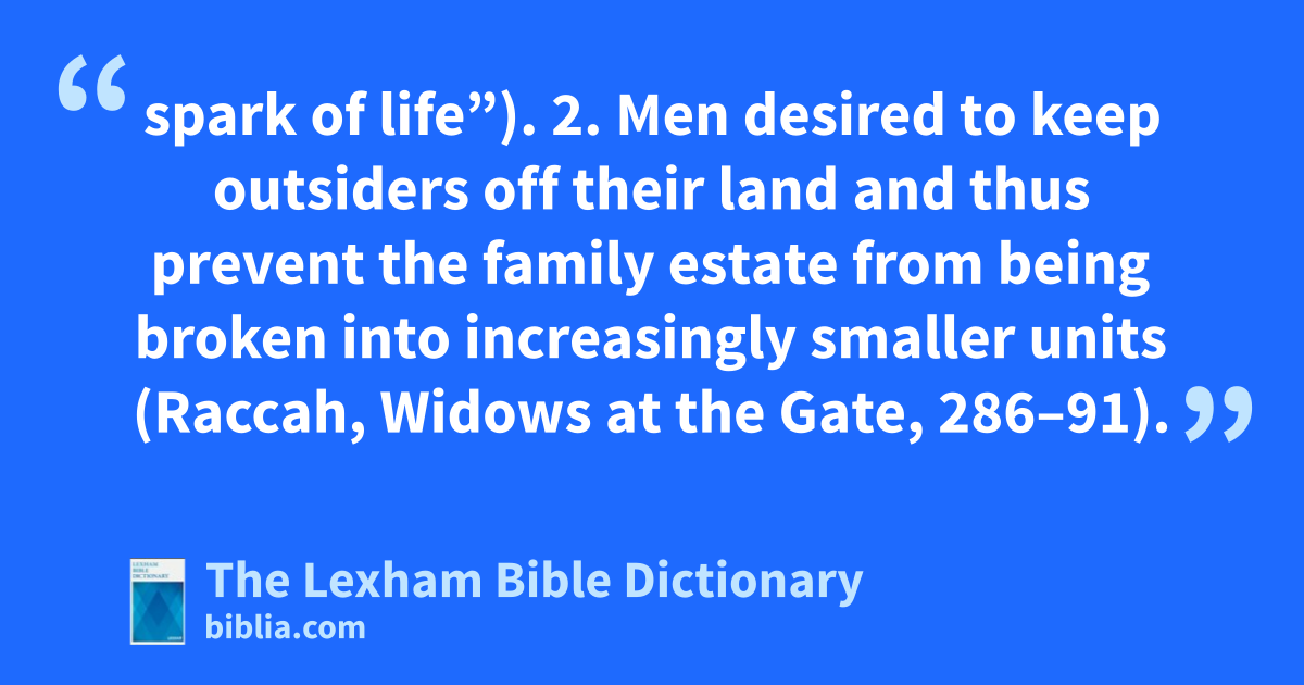 2. Men desired to keep outsiders off their land and thus prevent the family estate from being broken into increasingly smaller units (Raccah, Widows at the Gate, 286–91).