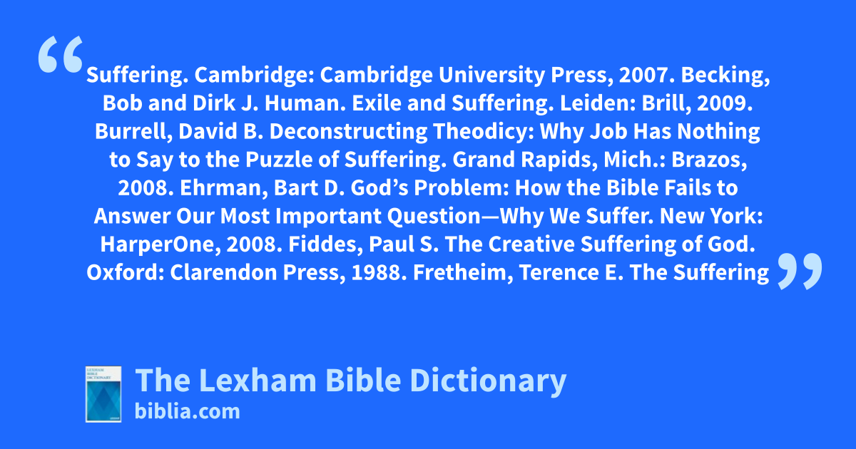 Tambasco, Anthony J., ed. The Bible on Suffering: Social and Political Implications. New York: Paulist Press, 2001.