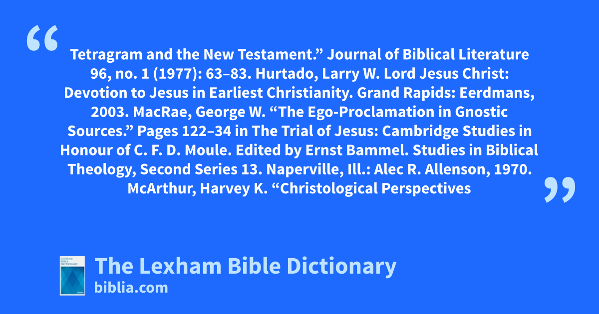 Howard, George. “The Tetragram and the New Testament.” Journal of Biblical Literature 96, no. 1 (1977): 63–83.
