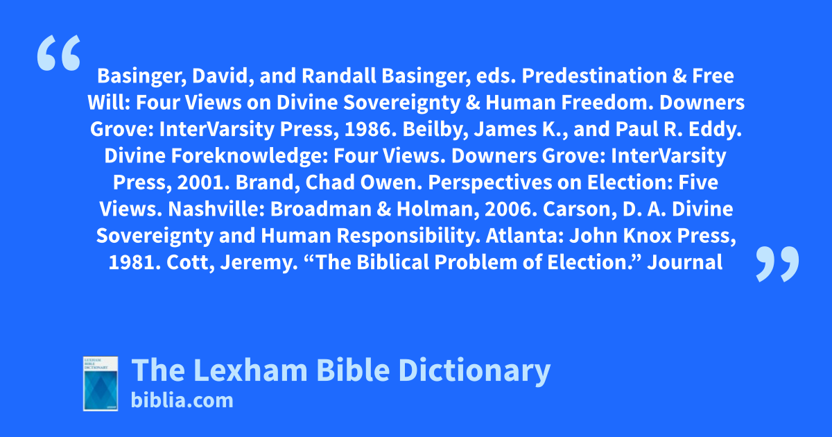 Brand, Chad Owen. Perspectives on Election: Five Views. Nashville: Broadman & Holman, 2006.