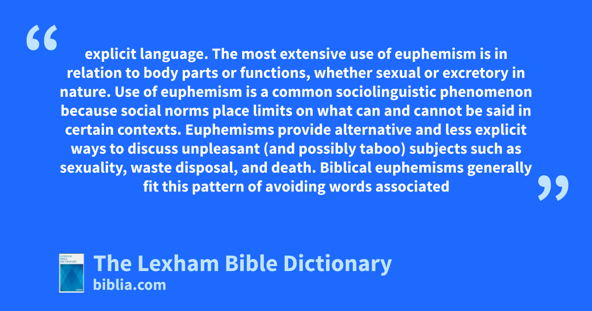 In the Old Testament in particular, the biblical authors frequently substituted words and phrases, or used circumlocution, to avoid explicit language. The most extensive use of euphemism is in relation to body parts or functions, whether sexual or excretory in nature. Use of euphemism is a common sociolinguistic phenomenon because social norms place limits on what can and cannot be said in certain contexts. Euphemisms provide alternative and less explicit ways to discuss unpleasant (and possibly taboo) subjects such as sexuality, waste disposal, and death. Biblical euphemisms generally fit this pattern of avoiding words associated with sex and human waste.
