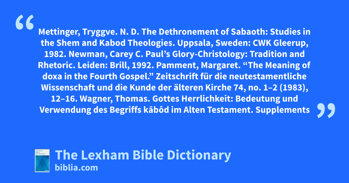 Wagner, Thomas. Gottes Herrlichkeit: Bedeutung und Verwendung des Begriffs kābôd im Alten Testament. Supplements to Vetus Testamentum 151. Leiden: Brill, 2012.