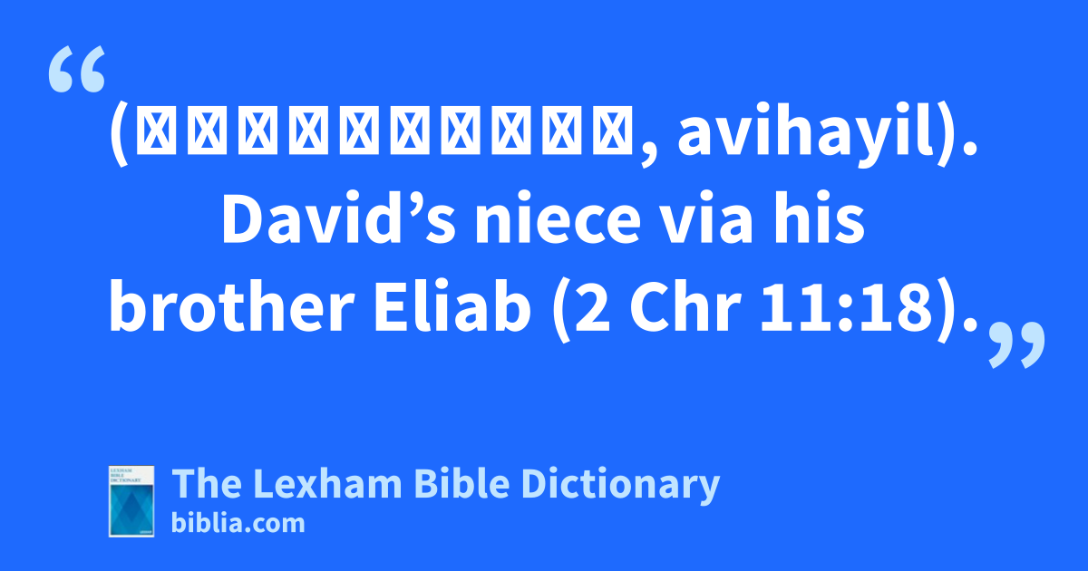 Abihail, Daughter of Eliab (אֲבִיהַיִל, avihayil). David’s niece via his brother Eliab (2 Chr 11:18).