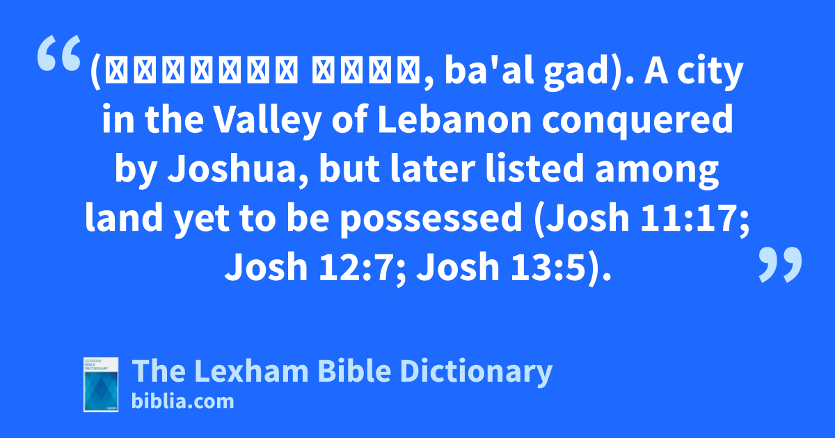 Baal-Gad (בַּ֫עַל גָּד, ba'al gad). A city in the Valley of Lebanon conquered by Joshua, but later listed among land yet to be possessed (Josh 11:17; Josh 12:7; Josh 13:5).