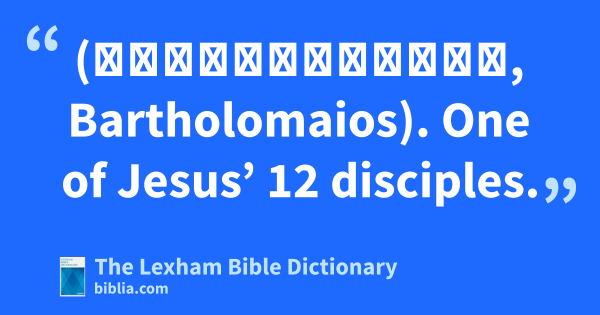 Bartholomew the Apostle (Βαρθολομαῖος, Bartholomaios). One of Jesus’ 12 disciples.
