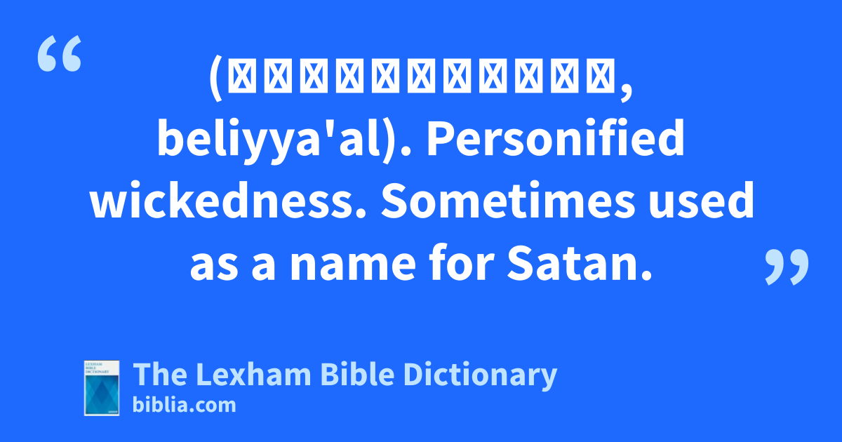 Belial (בְּלִיַּעַל, beliyya'al). Personified wickedness. Sometimes used as a name for Satan.