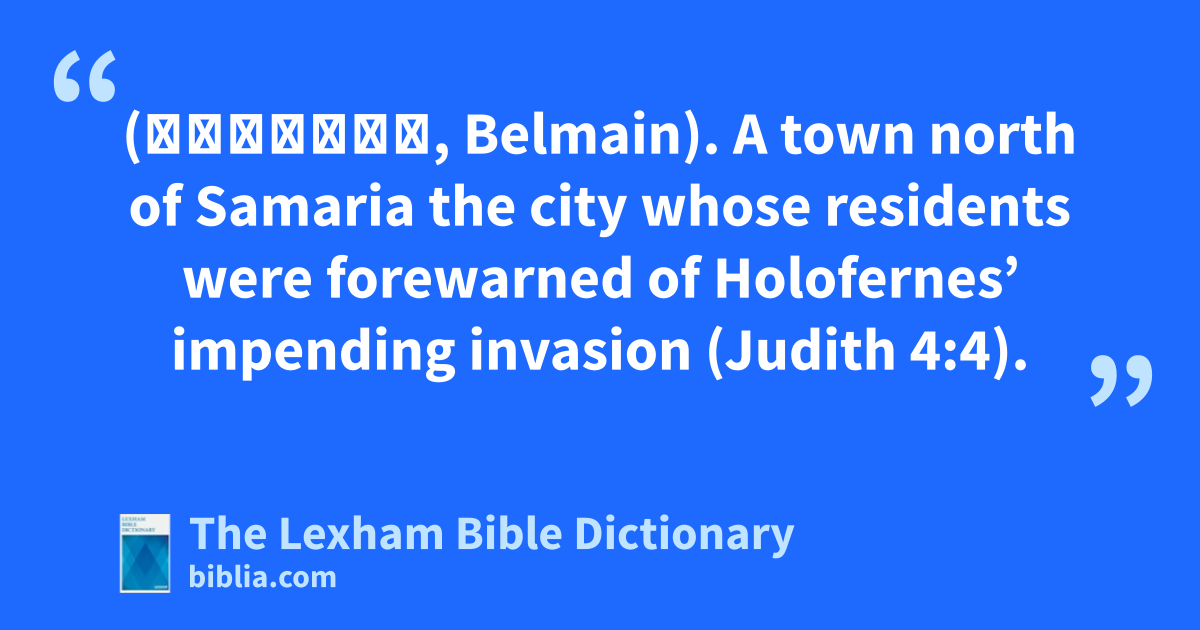 Belmain (Βελμαιν, Belmain). A town north of Samaria the city whose residents were forewarned of Holofernes’ impending invasion (Judith 4:4).