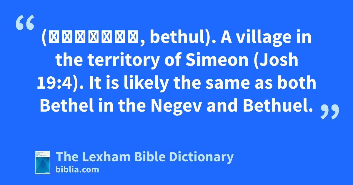 Bethul (בְּתוּל, bethul). A village in the territory of Simeon (Josh 19:4). It is likely the same as both Bethel in the Negev and Bethuel.
