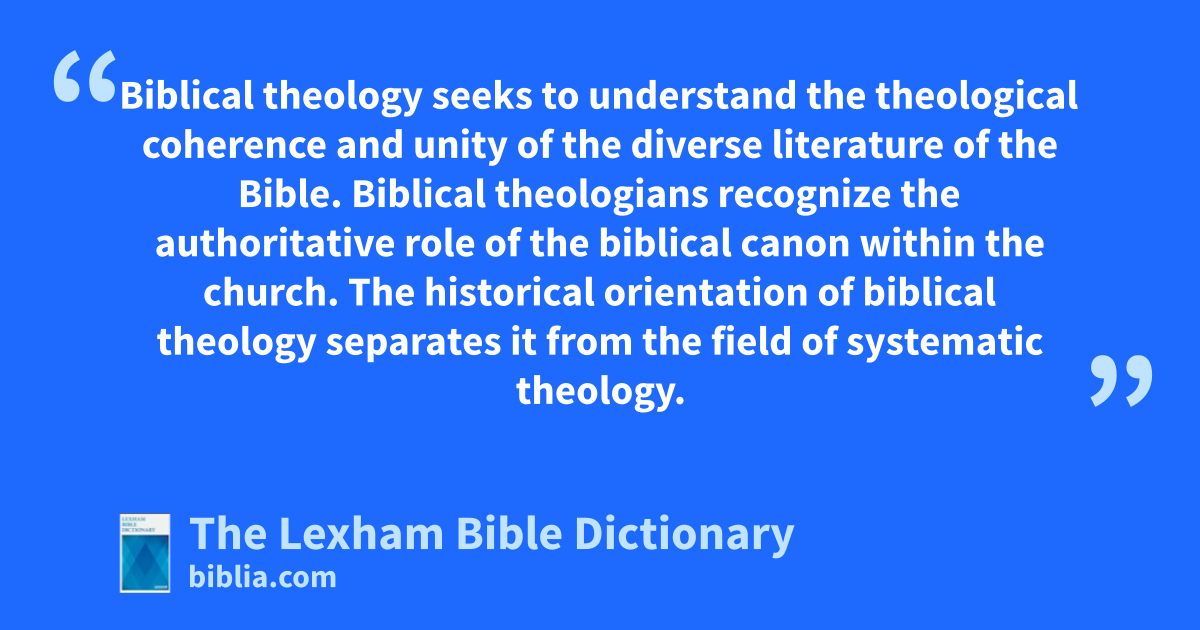 Biblical Theology, Practice Of Biblical theology seeks to understand the theological coherence and unity of the diverse literature of the Bible. Biblical theologians recognize the authoritative role of the biblical canon within the church. The historical orientation of biblical theology separates it from the field of systematic theology.