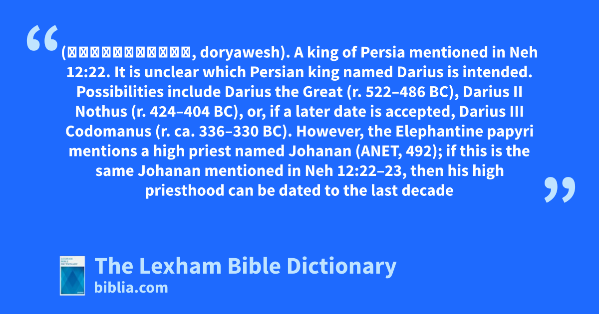 Darius the Persian (דָּרְיָוֶשׁ, doryawesh). A king of Persia mentioned in Neh 12:22.