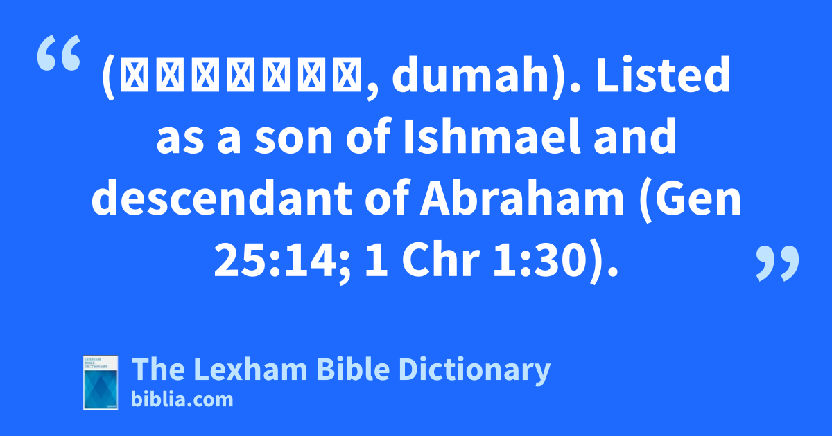 Dumah, Son of Ishmael (דּוּמָה, dumah). Listed as a son of Ishmael and descendant of Abraham (Gen 25:14; 1 Chr 1:30).