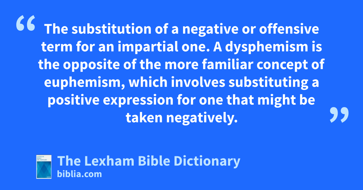 Dysphemism The substitution of a negative or offensive term for an impartial one. A dysphemism is the opposite of the more familiar concept of euphemism, which involves substituting a positive expression for one that might be taken negatively.