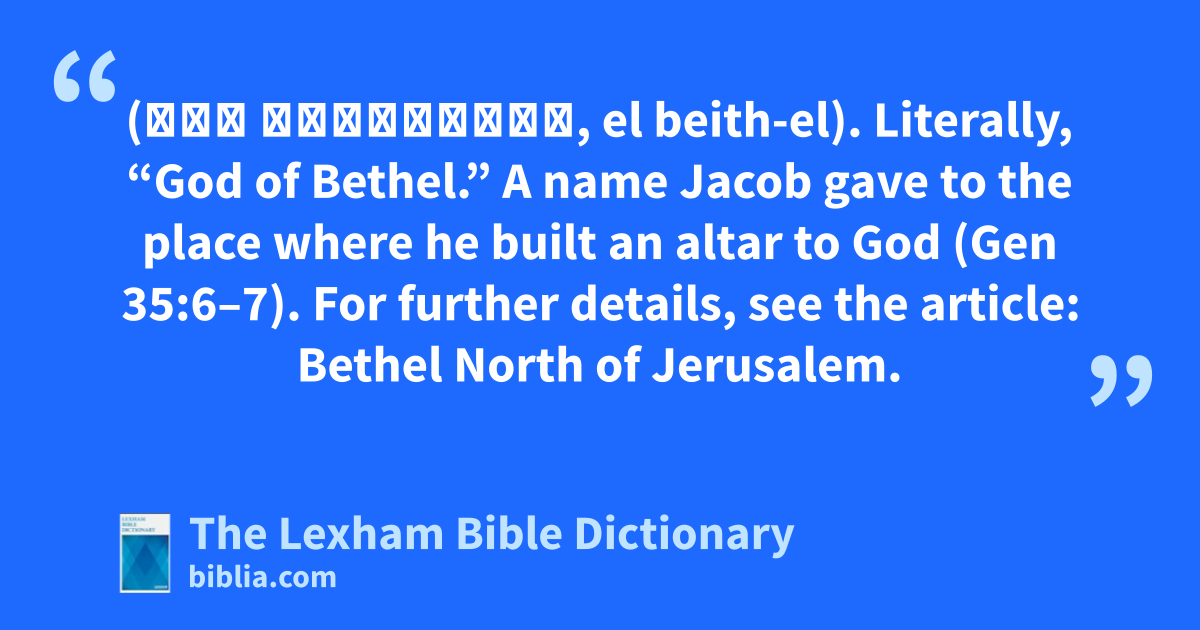 El-Bethel (אֵל בֵּית־אֵל, el beith-el). Literally, “God of Bethel.” A name Jacob gave to the place where he built an altar to God (Gen 35:6–7).