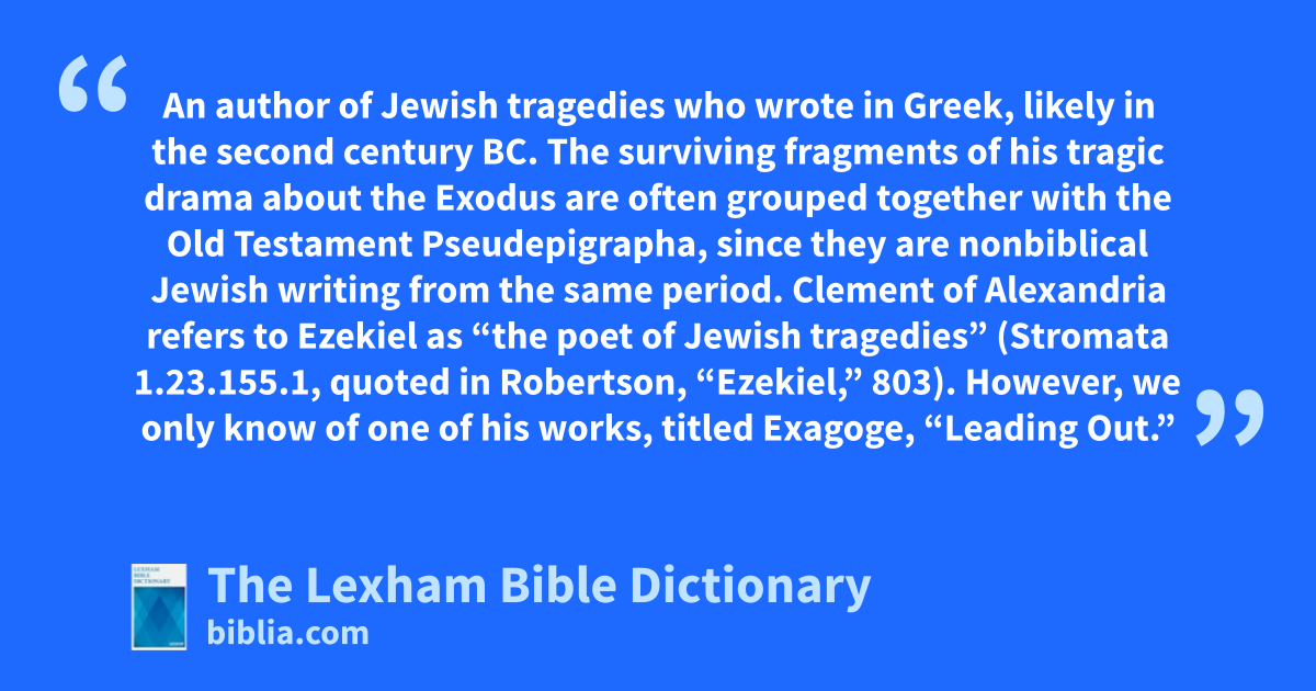 Ezekiel the Tragedian An author of Jewish tragedies who wrote in Greek, likely in the second century bc. The surviving fragments of his tragic drama about the Exodus are often grouped together with the Old Testament Pseudepigrapha, since they are nonbiblical Jewish writing from the same period.