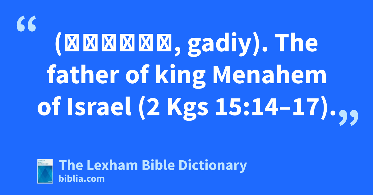 Gadi (גָּדִי, gadiy). The father of king Menahem of Israel (2 Kgs 15:14–17).