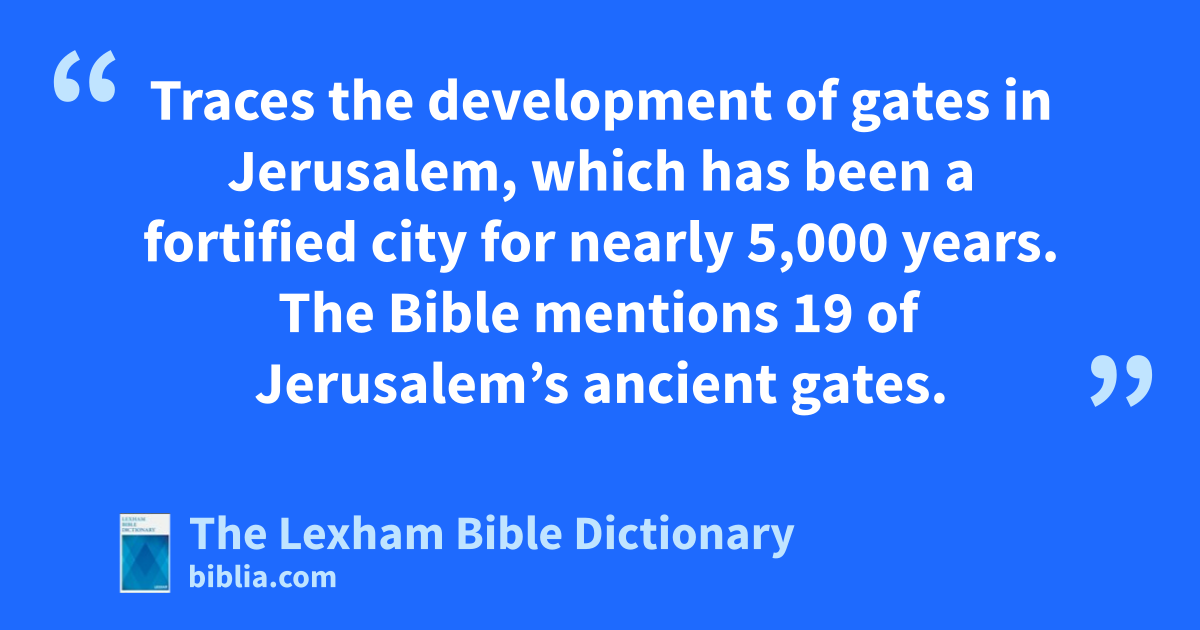 Gates of Jerusalem Traces the development of gates in Jerusalem, which has been a fortified city for nearly 5,000 years. The Bible mentions 19 of Jerusalem’s ancient gates.