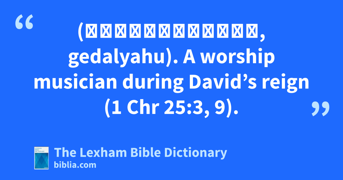 Gedaliah, Son of Jeduthun (גְּדַלְיָהוּ, gedalyahu). A worship musician during David’s reign (1 Chr 25:3, 9).