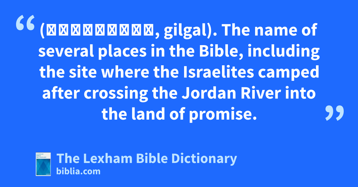 Gilgal (גִּלְגָּל, gilgal). The name of several places in the Bible, including the site where the Israelites camped after crossing the Jordan River into the land of promise.