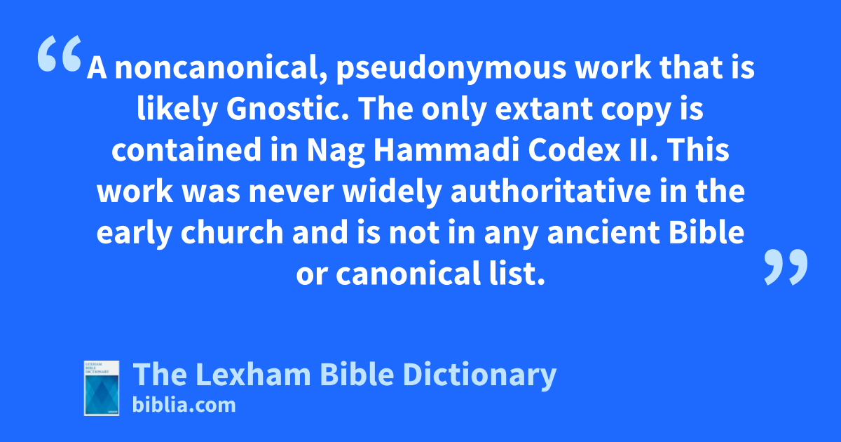 Gospel of Philip A noncanonical, pseudonymous work that is likely Gnostic. The only extant copy is contained in Nag Hammadi Codex II. This work was never widely authoritative in the early church and is not in any ancient Bible or canonical list.
