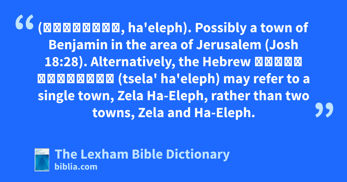 Ha-Eleph (הָאֶ֫לֶף, ha'eleph). Possibly a town of Benjamin in the area of Jerusalem (Josh 18:28). Alternatively, the Hebrew צֵלַע הָאֶ֫לֶף (tsela' ha'eleph) may refer to a single town, Zela Ha-Eleph, rather than two towns, Zela and Ha-Eleph.