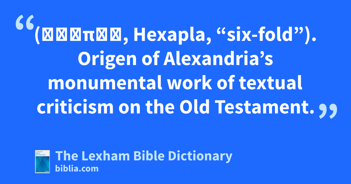 Hexapla of Origen (Ἑξαπλά, Hexapla, “six-fold”). Origen of Alexandria’s monumental work of textual criticism on the Old Testament.