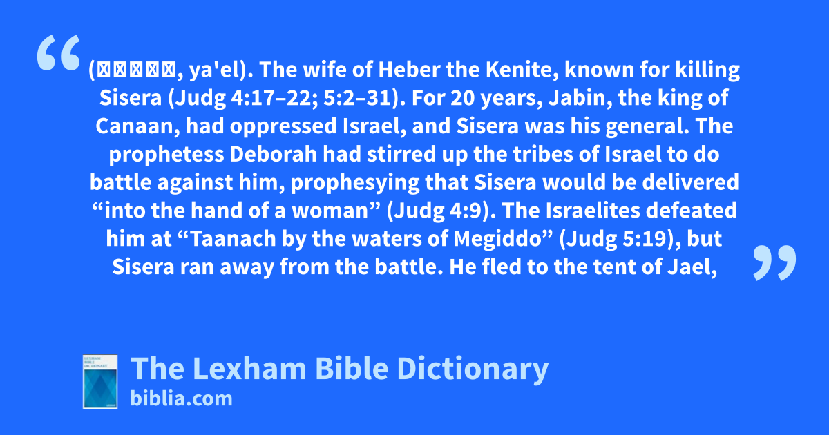 Jael (יָעֵל, ya'el). The wife of Heber the Kenite, known for killing Sisera (Judg 4:17–22; 5:2–31).