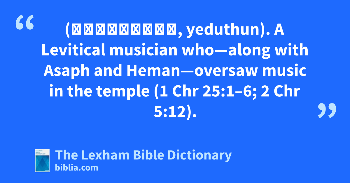 Jeduthun (יְדוּתוּן, yeduthun). A Levitical musician who—along with Asaph and Heman—oversaw music in the temple (1 Chr 25:1–6; 2 Chr 5:12).
