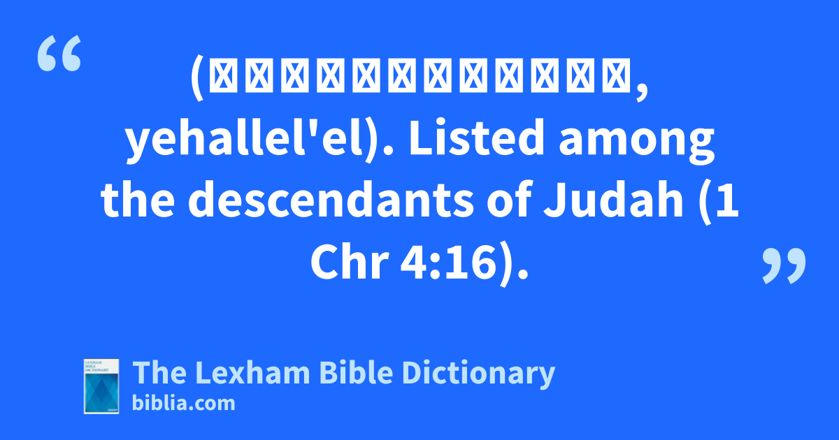 Jehallelel, Descendant of Judah (יְהַלֶּלְאֵל, yehallel'el). Listed among the descendants of Judah (1 Chr 4:16).