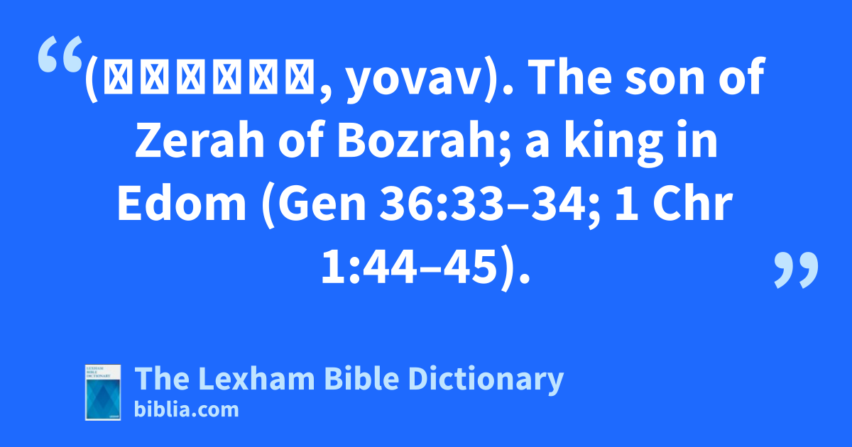 Jobab, Son of Zerah (יוֹבָב, yovav). The son of Zerah of Bozrah; a king in Edom (Gen 36:33–34; 1 Chr 1:44–45).