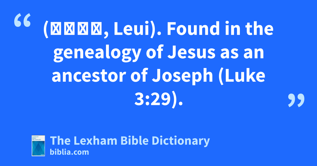 Levi, Son of Simeon (Λευί, Leui). Found in the genealogy of Jesus as an ancestor of Joseph (Luke 3:29).