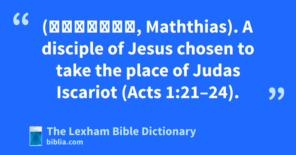 Matthias (Μαθθίας, Maththias). A disciple of Jesus chosen to take the place of Judas Iscariot (Acts 1:21–24).