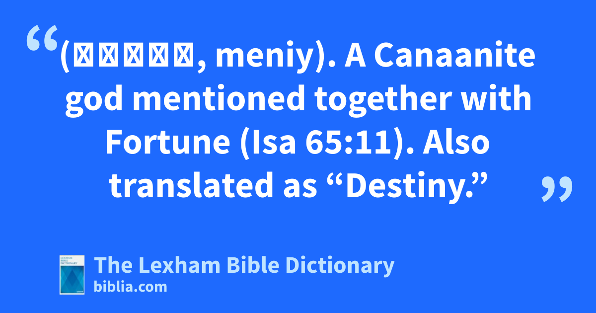 Meni (מְנִי, meniy). A Canaanite god mentioned together with Fortune (Isa 65:11). Also translated as “Destiny.”