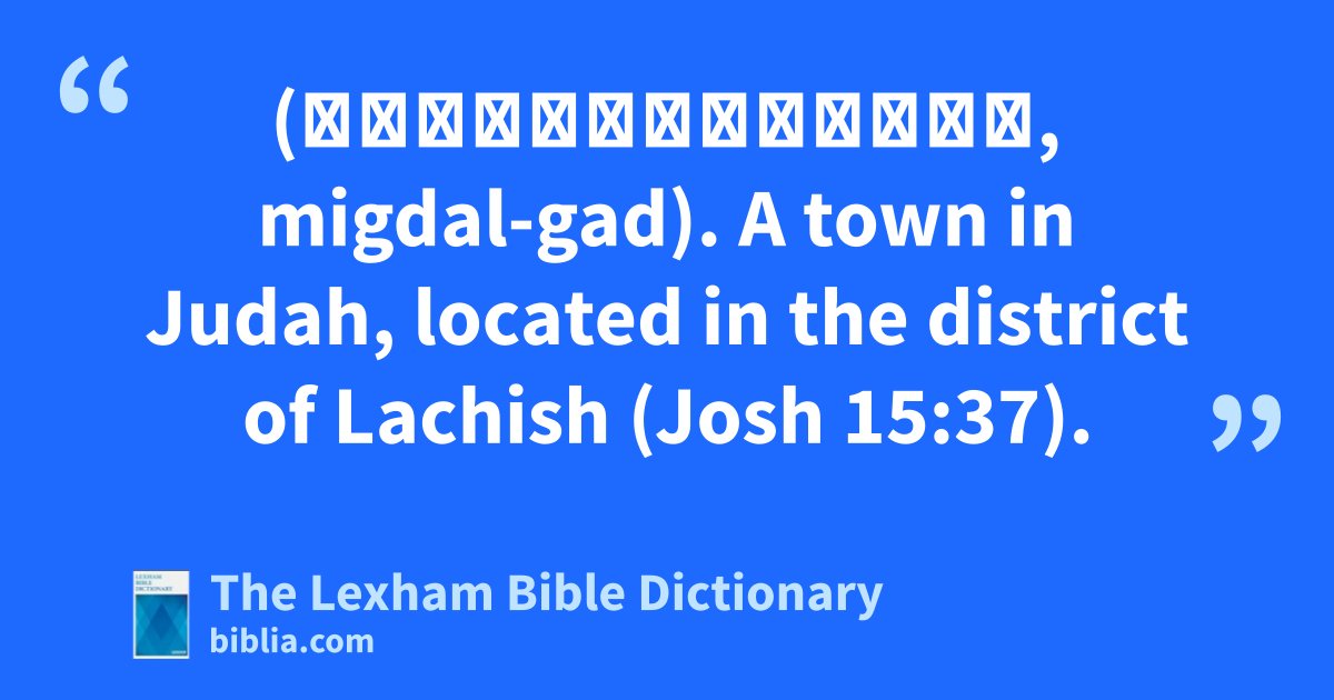 Migdal-Gad (מִגְדַּל־גָּד, migdal-gad). A town in Judah, located in the district of Lachish (Josh 15:37).