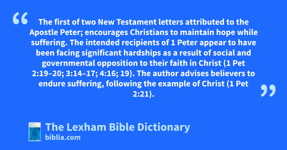 Peter, First Letter Of The first of two New Testament letters attributed to the Apostle Peter; encourages Christians to maintain hope while suffering.