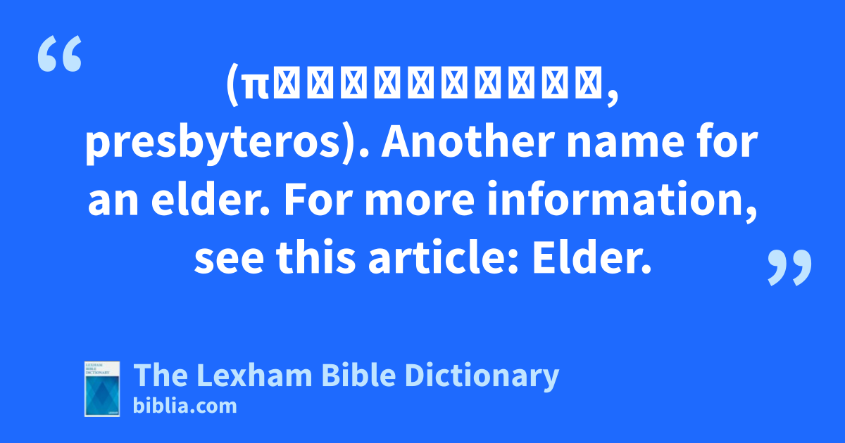 Presbyter (πρεσβύτερος, presbyteros). Another name for an elder. For more information, see this article: Elder.
