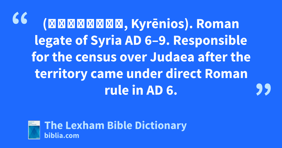 Publicus Sulpicius Quirinius (Κυρήνιος, Kyrēnios). Roman legate of Syria ad 6–9. Responsible for the census over Judaea after the territory came under direct Roman rule in ad 6.