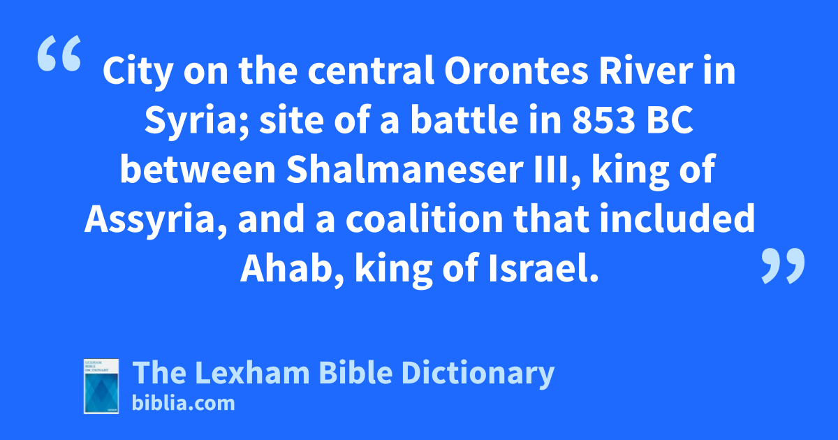 Qarqar City on the central Orontes River in Syria; site of a battle in 853 bc between Shalmaneser III, king of Assyria, and a coalition that included Ahab, king of Israel.
