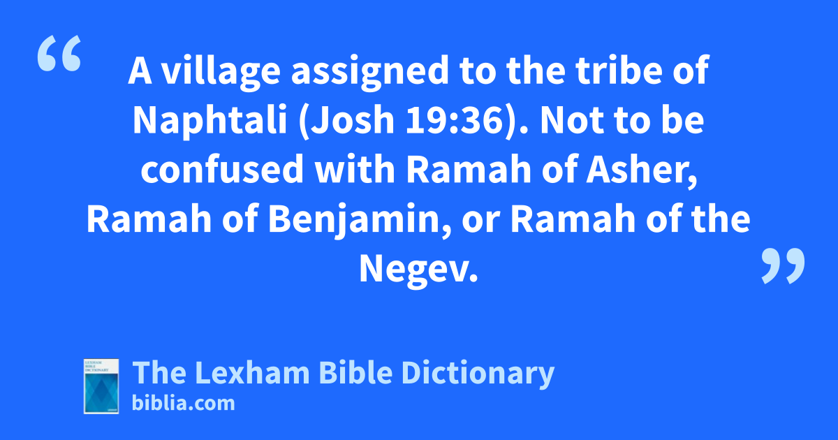 Ramah of Naphtali A village assigned to the tribe of Naphtali (Josh 19:36). Not to be confused with Ramah of Asher, Ramah of Benjamin, or Ramah of the Negev.