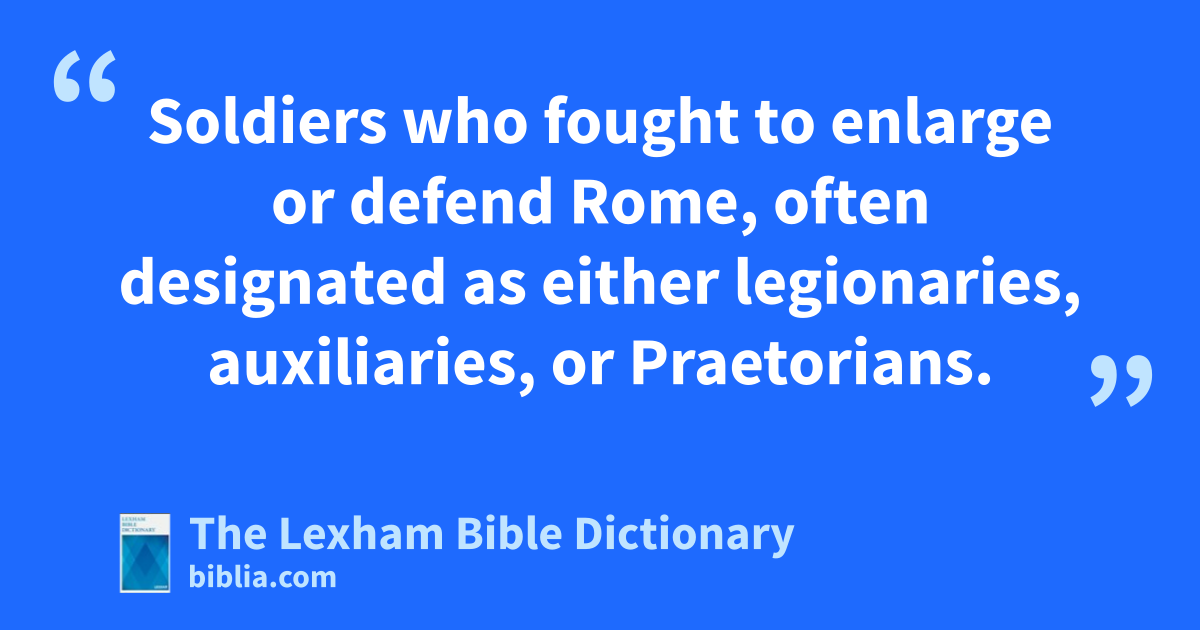 Roman Army Soldiers who fought to enlarge or defend Rome, often designated as either legionaries, auxiliaries, or Praetorians.