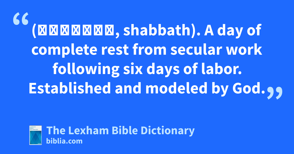 Sabbath (שַׁבָּת, shabbath). A day of complete rest from secular work following six days of labor. Established and modeled by God.