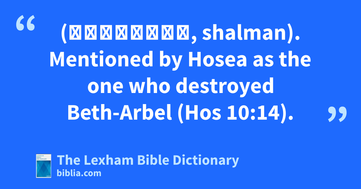 Shalman (שַׁלְמַן, shalman). Mentioned by Hosea as the one who destroyed Beth-Arbel (Hos 10:14).