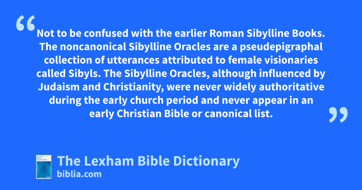 Sibylline Oracles Not to be confused with the earlier Roman Sibylline Books. The noncanonical Sibylline Oracles are a pseudepigraphal collection of utterances attributed to female visionaries called Sibyls. The Sibylline Oracles, although influenced by Judaism and Christianity, were never widely authoritative during the early church period and never appear in an early Christian Bible or canonical list.